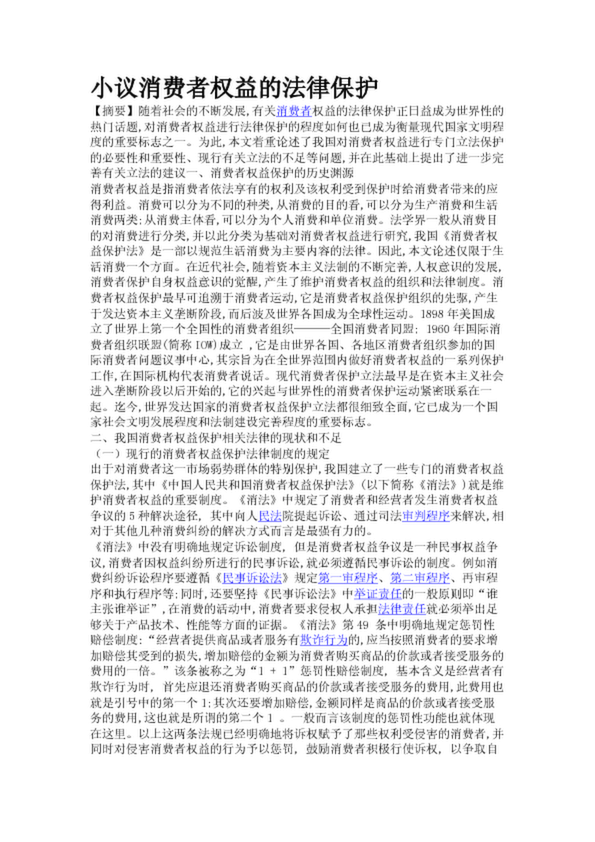 小議消費者權(quán)益的法律保護(hù)