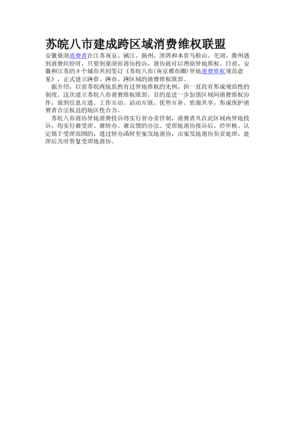 蘇皖八市建成跨區(qū)域消費維權聯(lián)盟