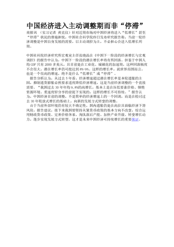 中國經(jīng)濟(jì)進(jìn)入主動調(diào)整期而非“停滯”
