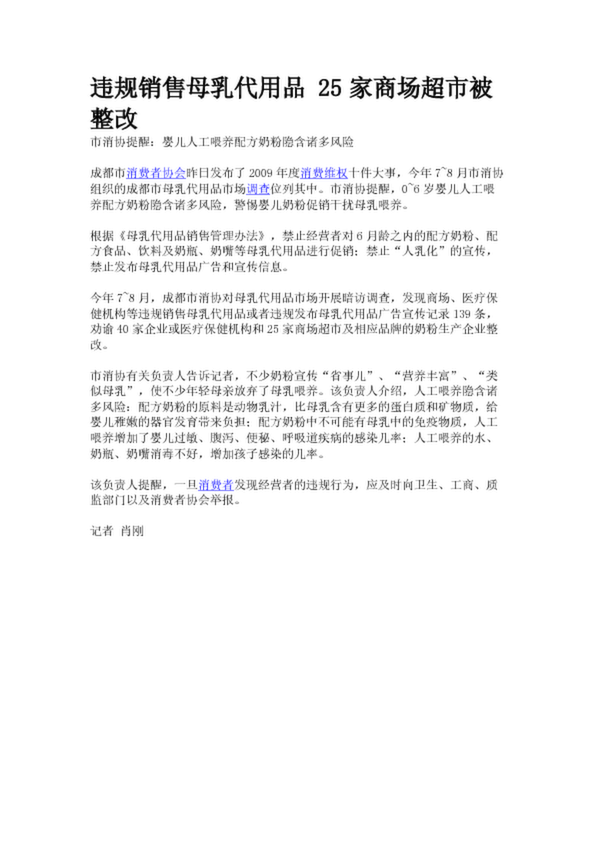 違規(guī)銷(xiāo)售母乳代用品 25家商場(chǎng)超市被整改