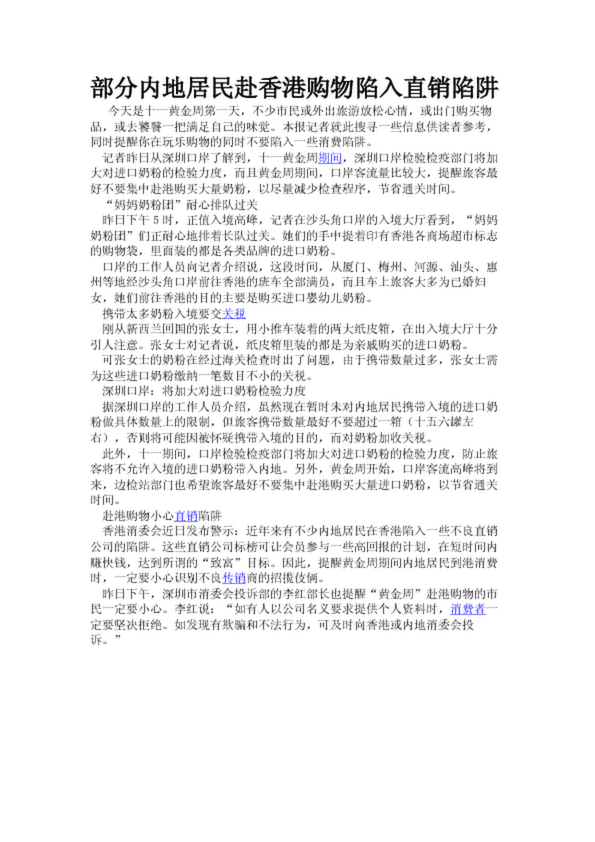 部分內(nèi)地居民赴香港購物陷入直銷陷阱
