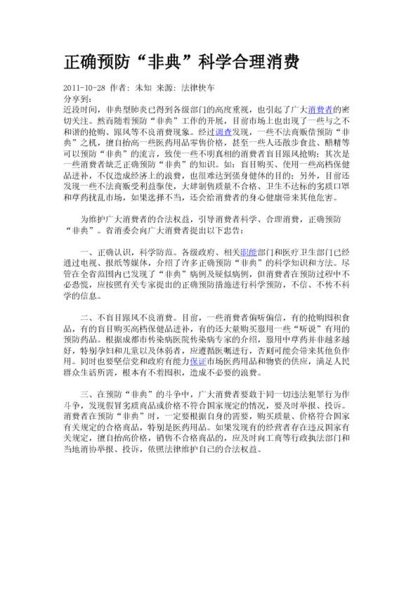 正確預(yù)防“非典”科學(xué)合理消費