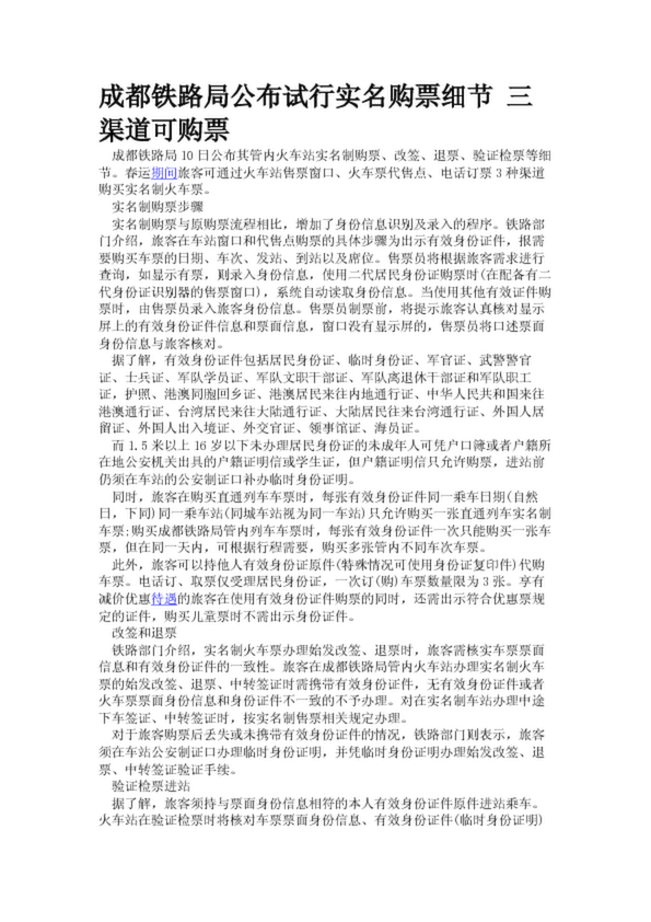 成都鐵路局公布試行實名購票細節(jié) 三渠道可購票