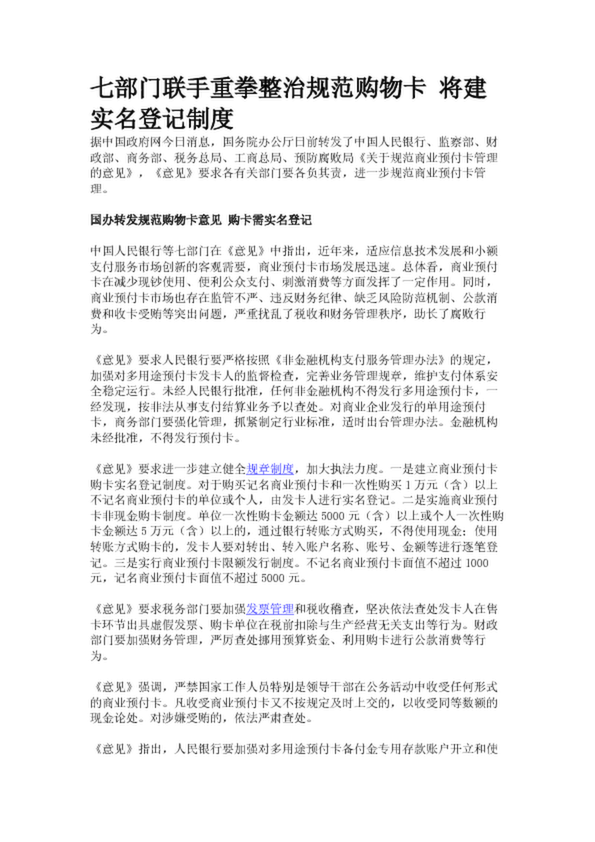 七部門(mén)聯(lián)手重拳整治規(guī)范購(gòu)物卡 將建實(shí)名登記制度