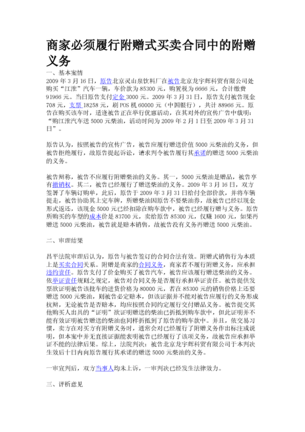 商家必須履行附贈式買賣合同中的附贈義務(wù)