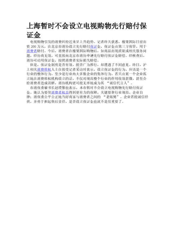 上海暫時(shí)不會(huì)設(shè)立電視購物先行賠付保證金