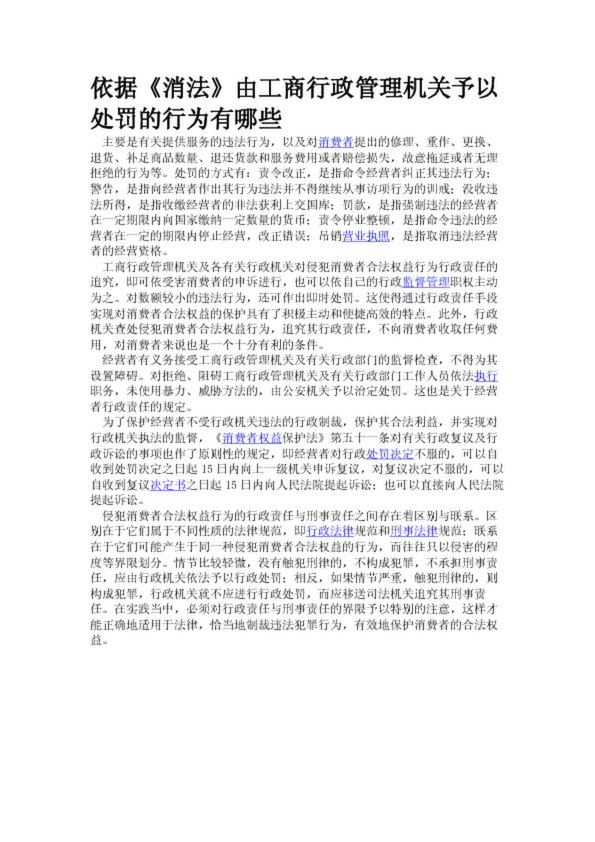 依據(jù)《消法》由工商行政管理機(jī)關(guān)予以處罰的行為有哪些