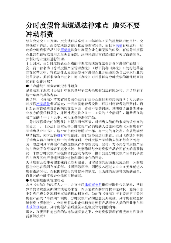 分時(shí)度假管理遭遇法律難點(diǎn) 購(gòu)買不要沖動(dòng)消費(fèi)