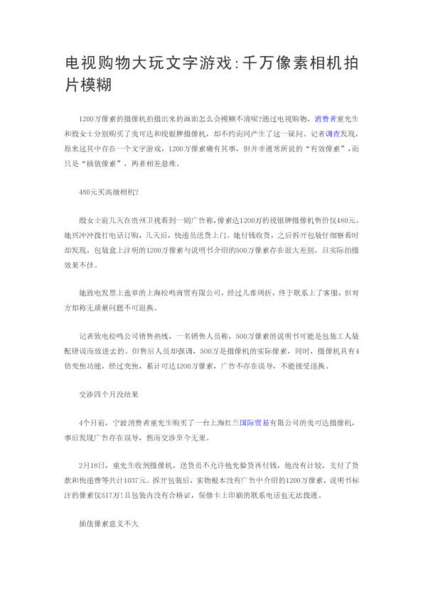 電視購物大玩文字游戲千萬像素相機拍片模糊