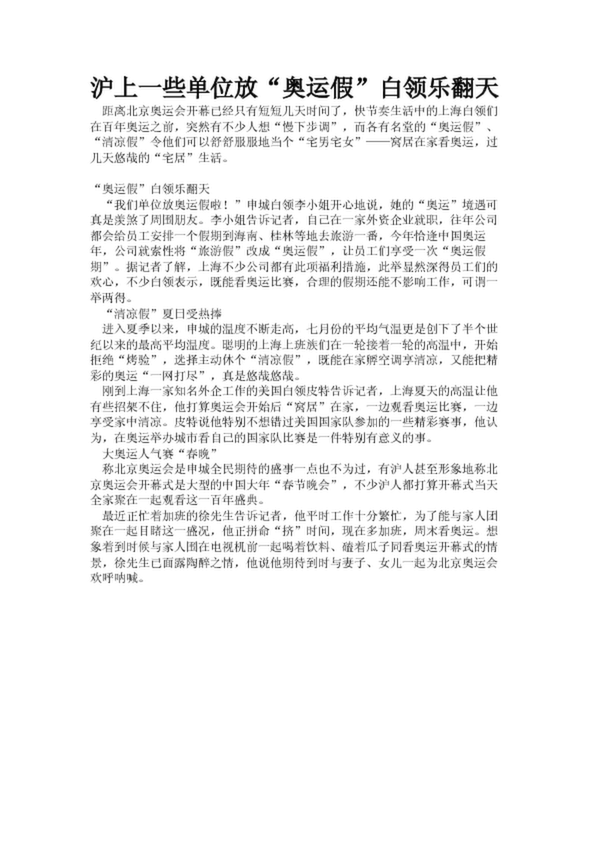 滬上一些單位放“奧運(yùn)假”白領(lǐng)樂(lè)翻天(18.80KB)