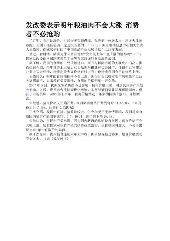 發(fā)改委表示明年糧油肉不會大漲 消費者不必?fù)屬?/a>