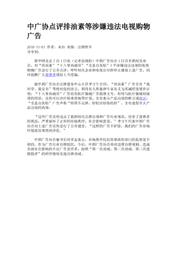 中廣協(xié)點(diǎn)評(píng)排油素等涉嫌違法電視購物廣告