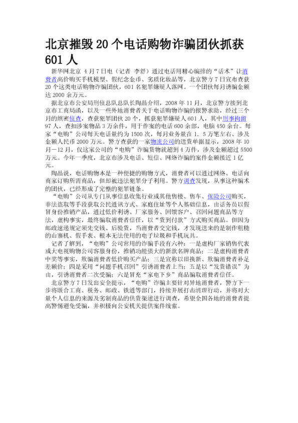 北京摧毀20個電話購物詐騙團伙抓獲601人