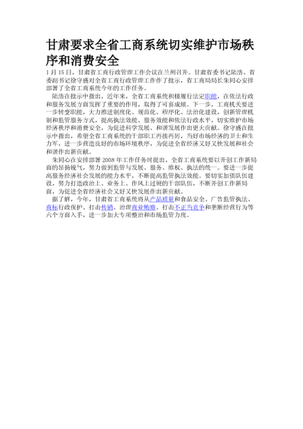 甘肅要求全省工商系統(tǒng)切實(shí)維護(hù)市場(chǎng)秩序和消費(fèi)安全(18.83KB)