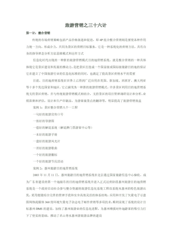為加快旅游國(guó)際化步伐,把張家界建設(shè)成為世界旅游目的地,特提出以下三十六計(jì)對(duì)策措施供決策部門(mén)參考。 第一計(jì): 傳統(tǒng)的市場(chǎng)營(yíng)銷(xiāo)策略包括產(chǎn)品價(jià)格渠道和促進(jìn),即 4P 組合整合 營(yíng)銷(xiāo)則是要使各種作用力統(tǒng)一方向,形成合力,共同為景區(qū)的...