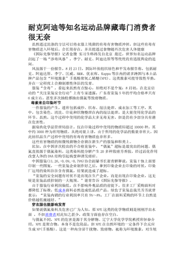 耐克阿迪等知名運(yùn)動(dòng)品牌藏毒門消費(fèi)者很無(wú)奈