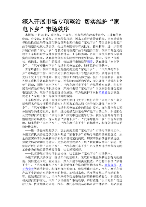 深入開展市場專項整治 切實維護“家電下鄉(xiāng)”市場秩序