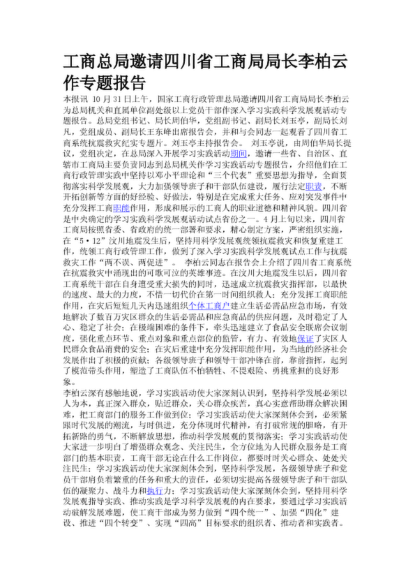 工商總局邀請(qǐng)四川省工商局局長(zhǎng)李柏云作專(zhuān)題報(bào)告