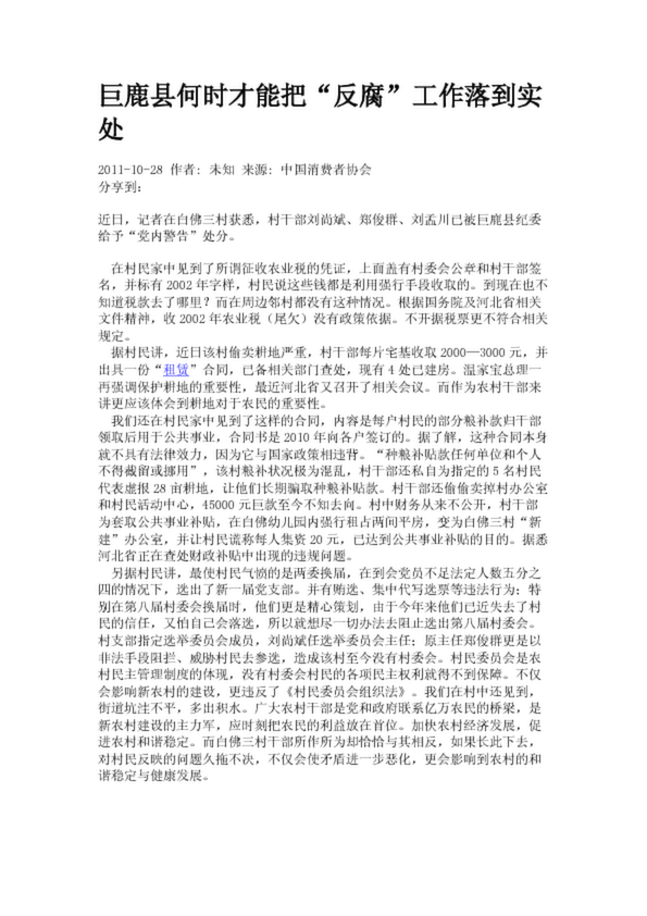 巨鹿縣何時才能把“反腐”工作落到實處