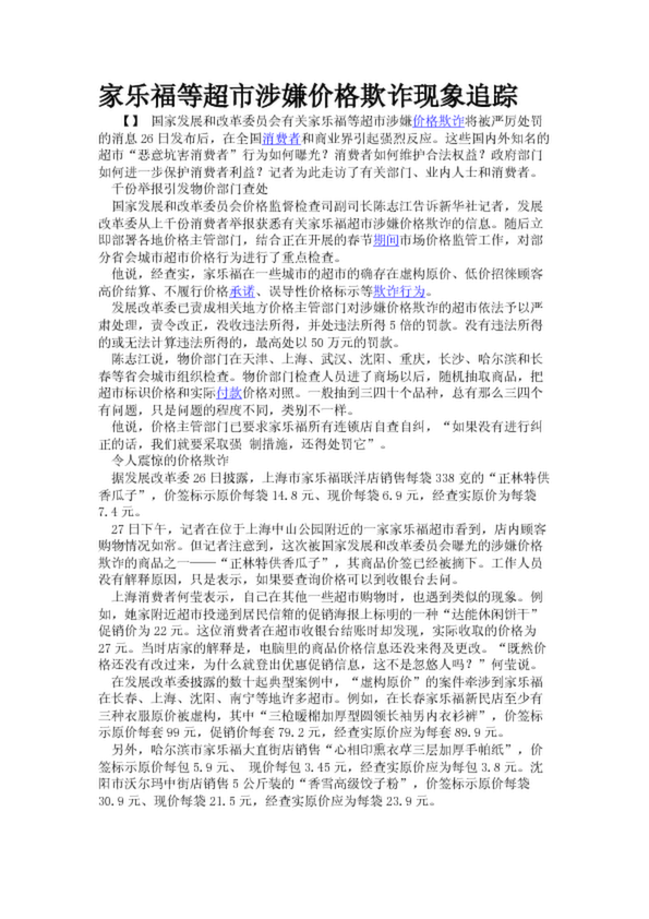 家樂福等超市涉嫌價(jià)格欺詐現(xiàn)象追蹤