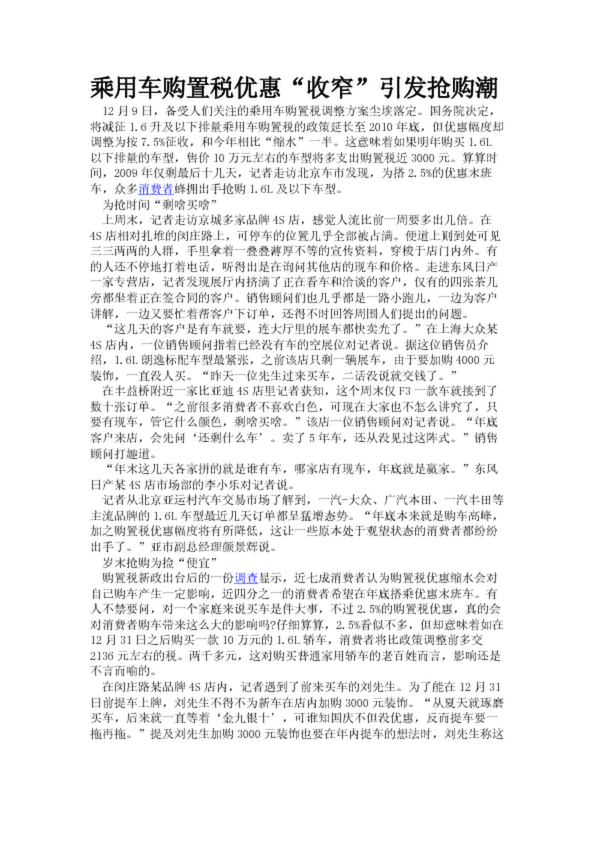 乘用車購(gòu)置稅優(yōu)惠“收窄”引發(fā)搶購(gòu)潮