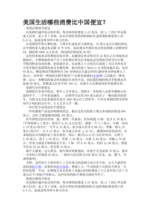 美國生活哪些消費比中國便宜?