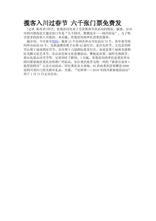 攬客入川過春節(jié) 六千張門票免費(fèi)發(fā)