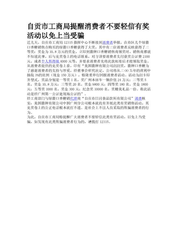 自貢市工商局提醒消費(fèi)者不要輕信有獎(jiǎng)活動(dòng)以免上當(dāng)受騙