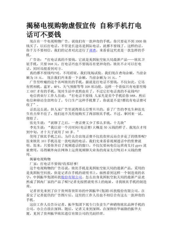 揭秘電視購(gòu)物虛假宣傳 自稱(chēng)手機(jī)打電話(huà)可不要錢(qián)