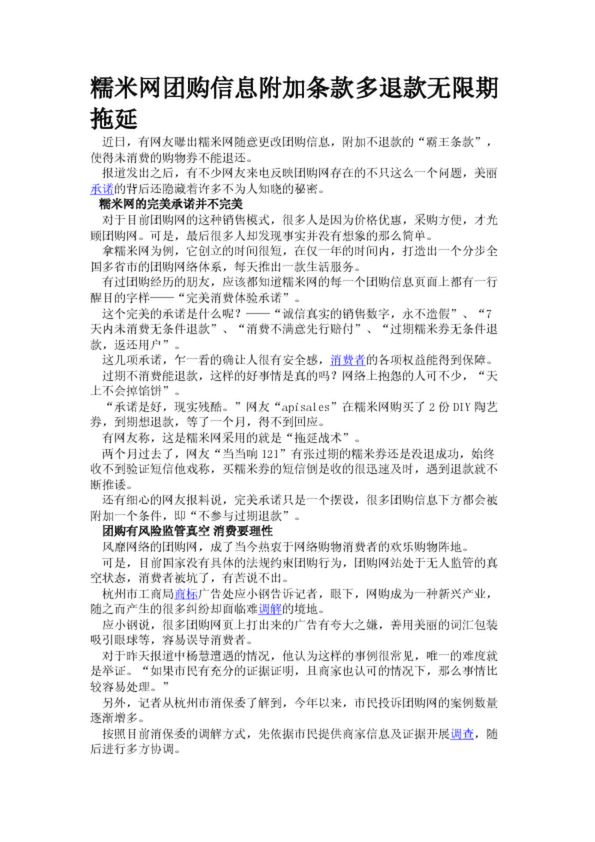 糯米網(wǎng)團(tuán)購(gòu)信息附加條款多退款無(wú)限期拖延