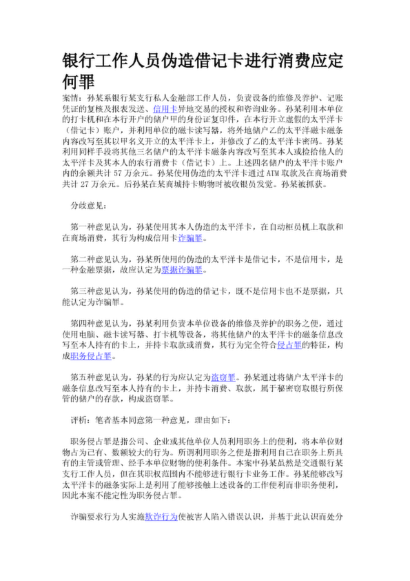 銀行工作人員偽造借記卡進(jìn)行消費(fèi)應(yīng)定何罪