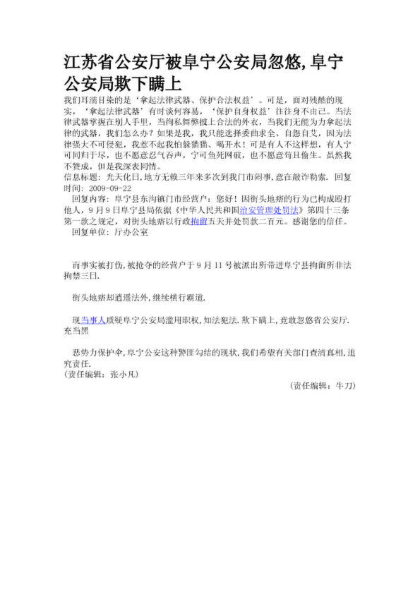 江蘇省公安廳被阜寧公安局忽悠,阜寧公安局欺下瞞上
