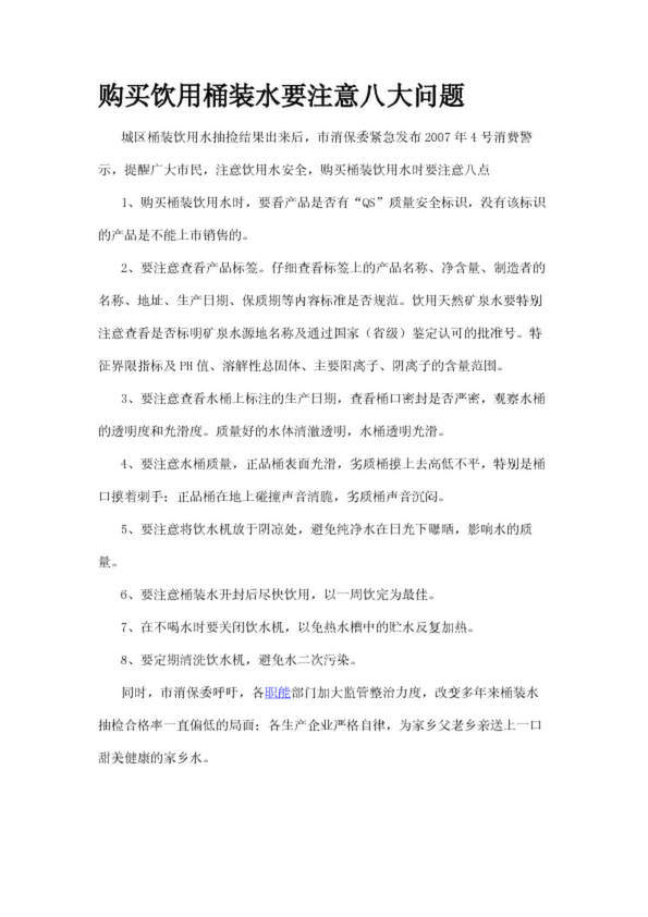 購(gòu)買飲用桶裝水要注意八大問(wèn)題(19.07KB)