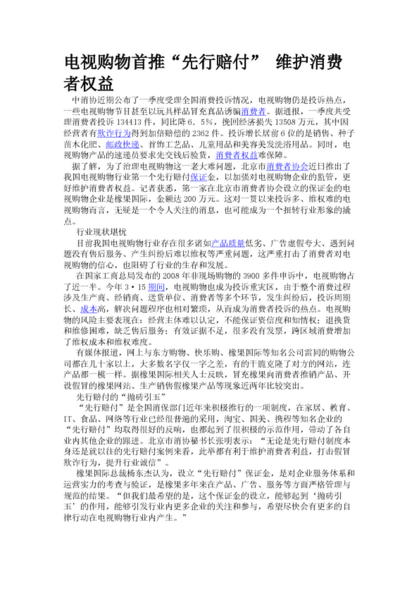 電視購(gòu)物首推“先行賠付” 維護(hù)消費(fèi)者權(quán)益