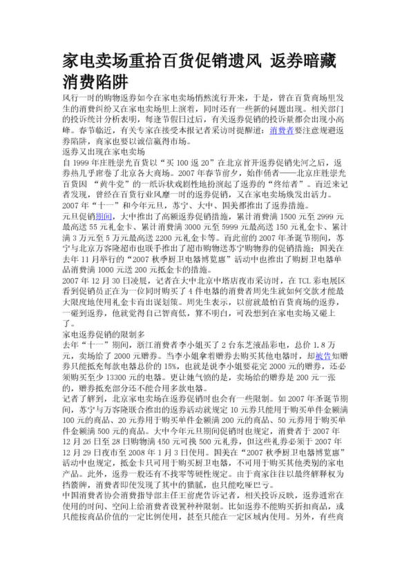 家電賣場重拾百貨促銷遺風(fēng) 返券暗藏消費(fèi)陷阱