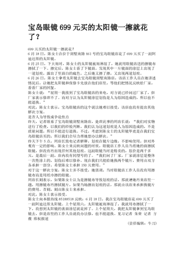 寶島眼鏡699元買的太陽鏡一擦就花了?