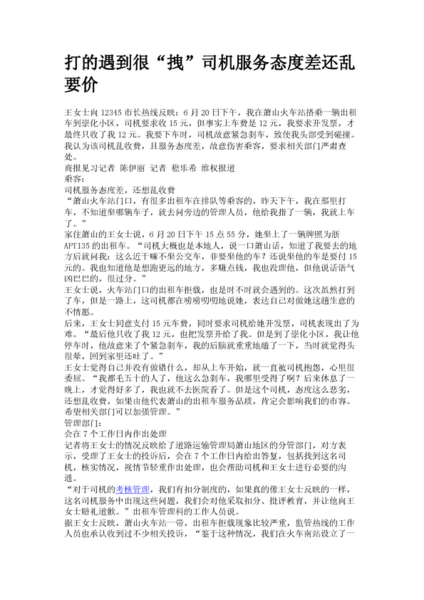 打的遇到很“拽”司機服務態(tài)度差還亂要價