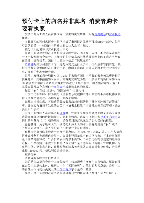 預(yù)付卡上的店名并非真名 消費(fèi)者購卡要看執(zhí)照