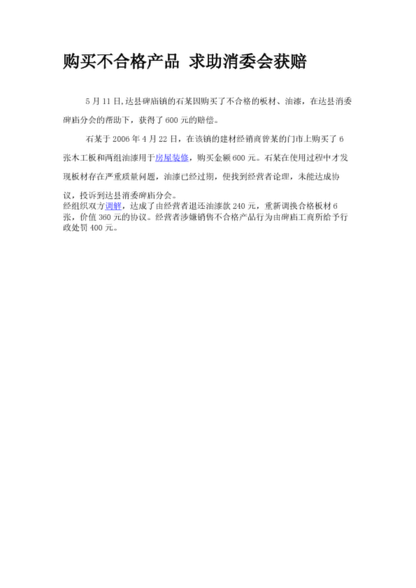 購買不合格產(chǎn)品 求助消委會獲賠