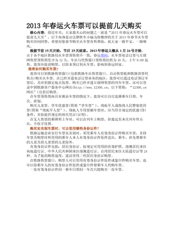 2013年春運火車票可以提前幾天購買(20.69KB)