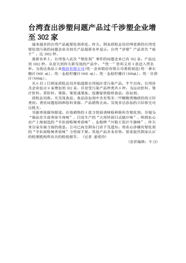 臺(tái)灣查出涉塑問(wèn)題產(chǎn)品過(guò)千涉塑企業(yè)增至302家
