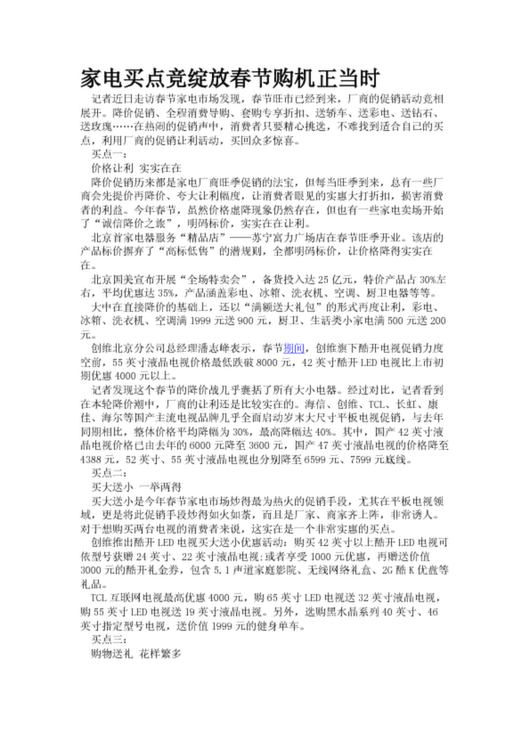 家電買(mǎi)點(diǎn)競(jìng)綻放春節(jié)購(gòu)機(jī)正當(dāng)時(shí)(37.36KB)