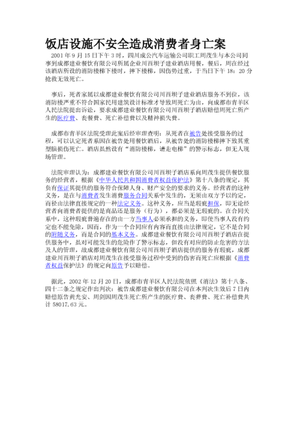 飯店設施不安全造成消費者身亡案