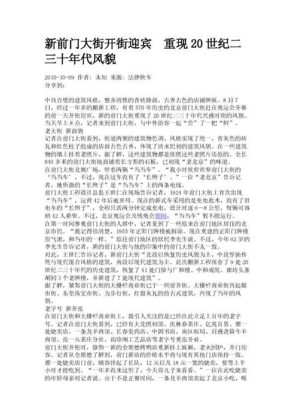 新前門大街開街迎賓 重現20世紀二三十年代風貌