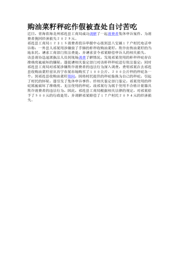 購油菜籽秤砣作假被查處自討苦吃