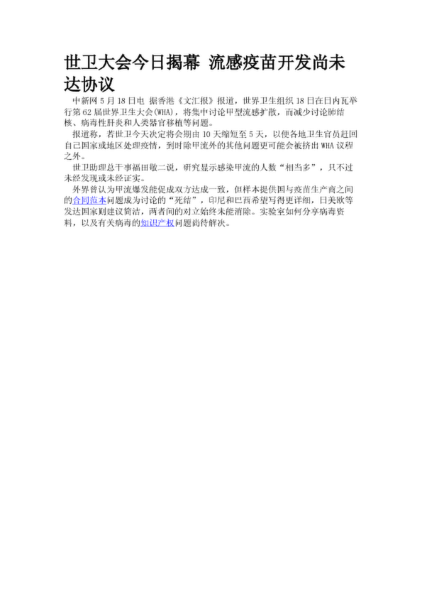世衛(wèi)大會(huì)今日揭幕 流感疫苗開發(fā)尚未達(dá)協(xié)議