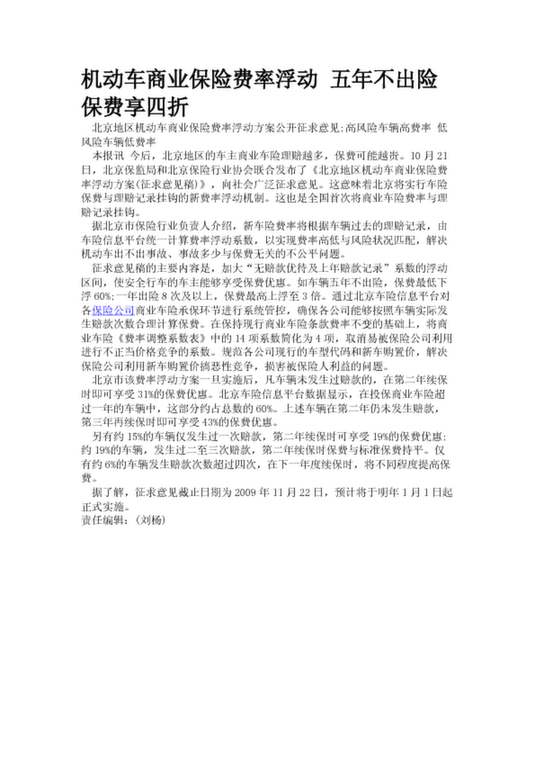 機動車商業(yè)保險費率浮動 五年不出險保費享四折