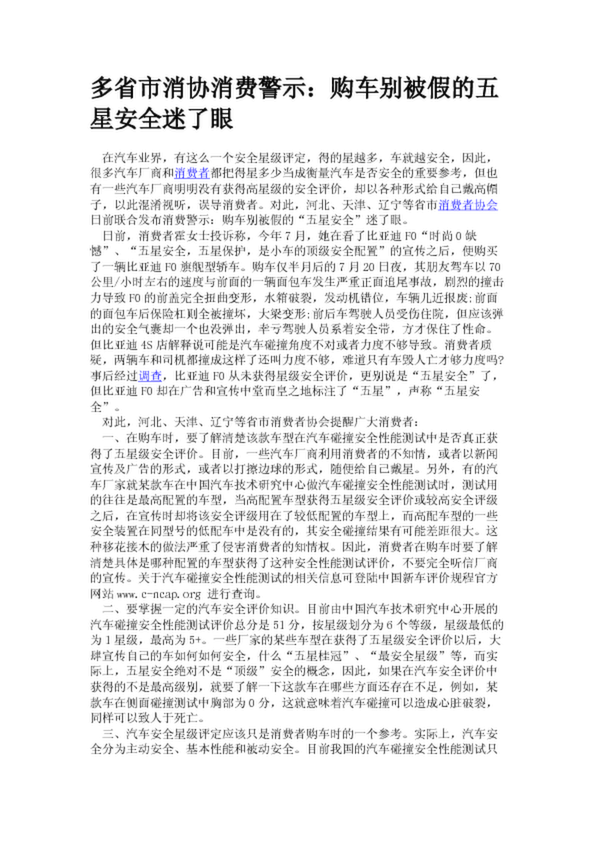 多省市消協(xié)消費警示:購車別被假的五星安全迷了眼