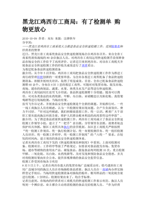 黑龍江雞西市工商局:有了檢測(cè)單 購(gòu)物更放心(6.34KB)