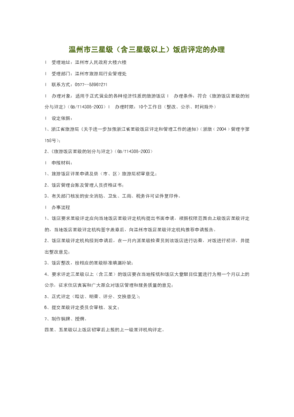 溫州市三星級(含三星級以上)飯店評定的辦理